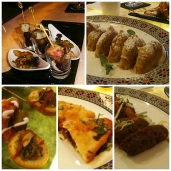 Amongst all the appetizers, my favorite were the Mini Quail Pastilles. Sweet and savoury perfectly balanced, stuffed with minced meat and lightly dusted with a layer of sugar and cinnamon they were just divine!! After finishing two, I had to literally stop myself for going in for a third keeping in mind the lovely lunch waiting ahead for us. I also loved the Lamb Merguez, Fava beans with beetroot shots, Lamb Medfouna, Prawns Pil Pil and an assortment of different Canapes. Everything was lightly spiced and tasted amazing.